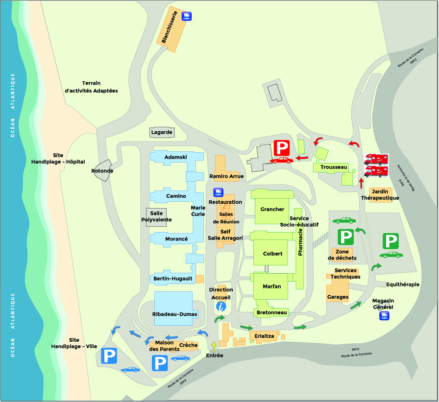 L’établissement bénéficie d’un environnement unique de 11 hectares, avec des parcours de santé et des espaces extérieurs favorisant la rééducation en lien avec la nature et l’océan. Son implantation ouverte sur la ville de Hendaye permet une intégration harmonieuse dans le tissu urbain tout en offrant un cadre propice au bien-être et à la récupération des patients.